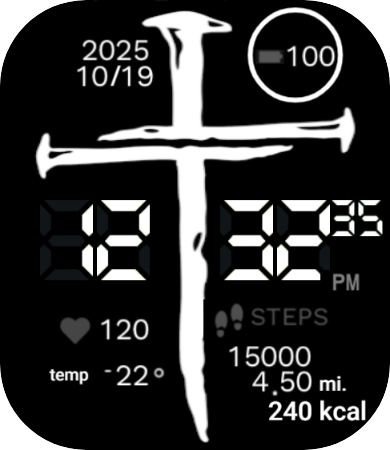 This was a journey, but I finally got my watch face approved on ZeppOS. It uses a one of my new favorite logs of the Nail Cross. I love having my own designed watch face that shares my Christian faith. It is fun sharing it with people. It incorporates a nail cross with the full date, the battery percentage with a circle demonstrating the percentage, temp outside, heart beats, steps, miles, and kcal.